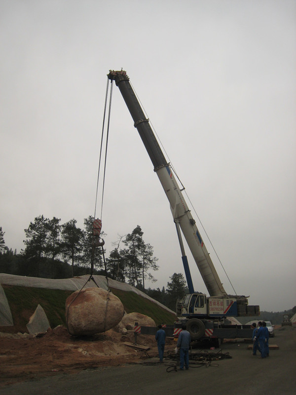 220T汽車吊作業——石頭吊裝(井岡山)
